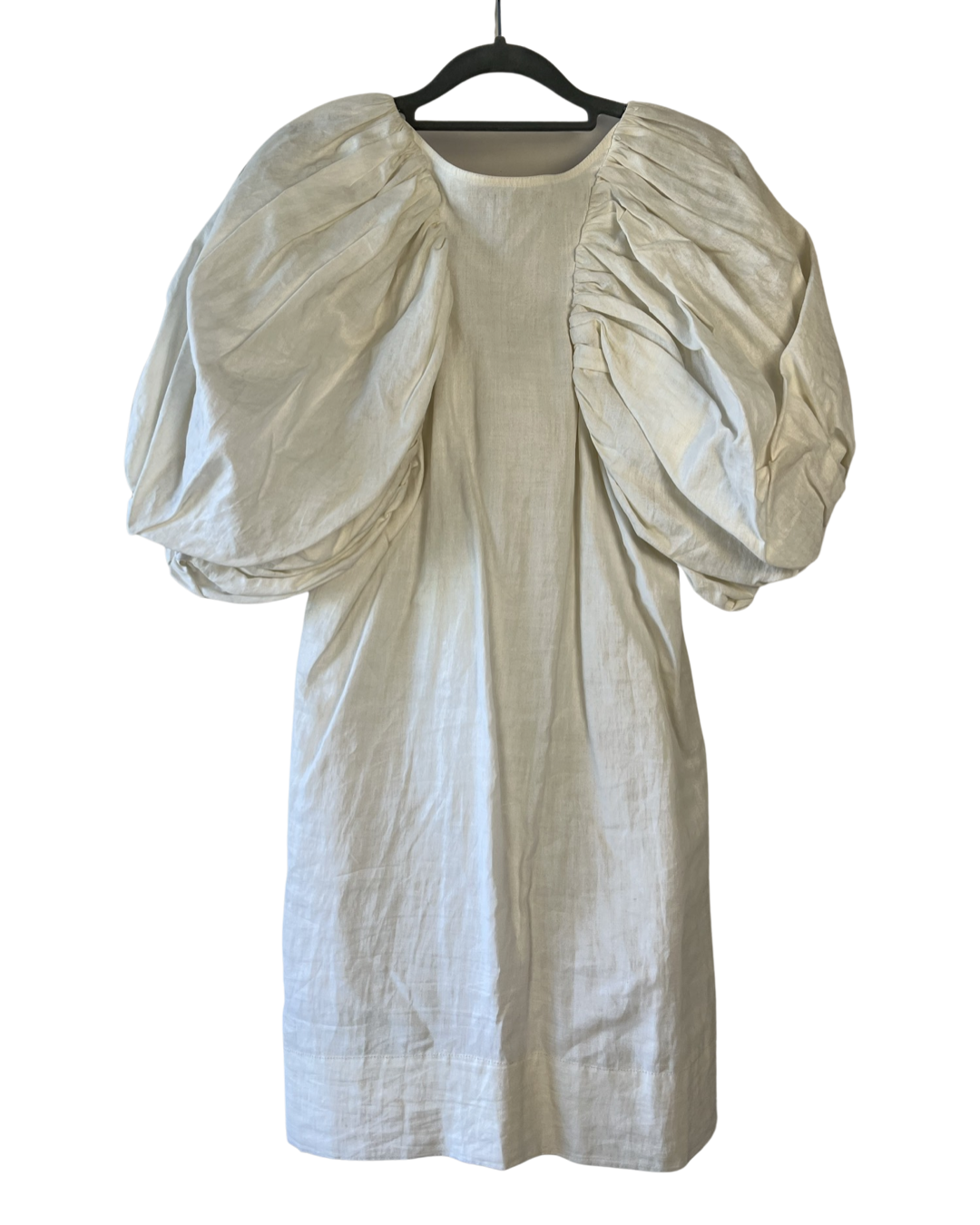 Elevate your fashion game with this stunning Stella McCartney dress! Made from a luxurious blend of bamboo and cotton, this cream dress will make you feel like a true fashion icon. With its unique balloon sleeves and elegant design, you'll turn heads wherever you go. The dress is in excellent condition and measures 42cm pit to pit and 82cm shoulder to hem. Don't miss out on this rare opportunity to own a piece from Stella McCartney's runway collection. Order now and experience the luxury and glamour of high fashion for yourself!